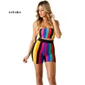 Echoine Sexy Two Piece Set Women Print Multicolor Stripe Sleeveless Strapeless Elastic Crop Tops Short Pants Suit Beach Outwear