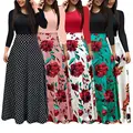 New Women Plus Size Bohemian Long Sleeve Maxi Dress Color Block Polka Dot Floral Patchwork Bodycon Empire Waist Vintage S-2XLUSD 7.57-10.05/piece