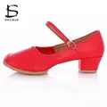 Teacher Dance Shoes Canvas Ballet Shoes Soft Bottom Square Low Heel Dancing Shoes Pink/Black/Red Women\'s Shoes Teaching Practice