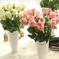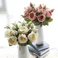 3 Heads White Rose Flowers Artificial Flowers Peonies Bouquet Silk Flowers Red Pink Blue Fake Flower New Year Wedding Home Decor