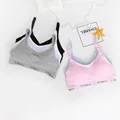 Famli Teen Girls Underwear Soft Padded Cotton Letter Print Bra for Young Girls for Yoga Sports Running Free Size