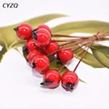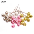 50pcs Mini Pearl Plastic Stamens Artificial Flowers Fruit Stamens Cherry for Wedding Christmas DIY Gift Box Wreaths Decoration