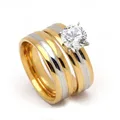 2 PCS/Set Zircon 316L Stainless Steel Wedding Rings For Women Gold-color Titanium Engagement Finger Rings Female 2017