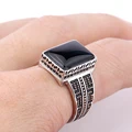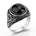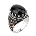 925 Sterling Silver Ring Crown Bezel Setting Oval Black Agate Stone with Rose Gold Grass for Men Party Fine Jewelry