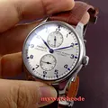 43mm parnis white dial brown leather strap power reserve indicater deployment clasp sea-gull 2505 automatic mens watch P413USD 74.16/piece