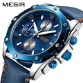 MEGIR Chronograph Men Watch Relogio Masculino Blue Leather Business Quartz Watch Clock Men Creative Army Military Wrist WatchesUSD 22.90/piece